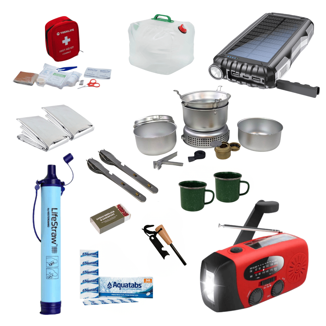 🔹 Indeholder vand, mad, førstehjælp, lys, batterier og basale redskaber